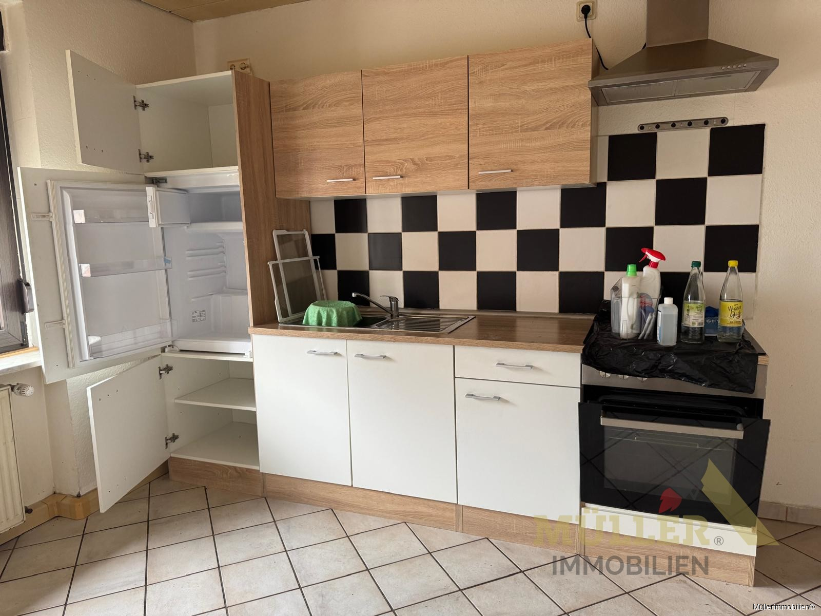 Die Wohnung besticht durch ihre Dielenböden, die jedem Raum eine warme und einladende Atmosphäre verleihen, während die gefliesten Bereiche für pflegeleichte Sauberkeit sorgen. Die vorhandene Einbauküche ist praktisch und bietet eine solide Grundlage, um Ihre Kochkünste zu entfalten.