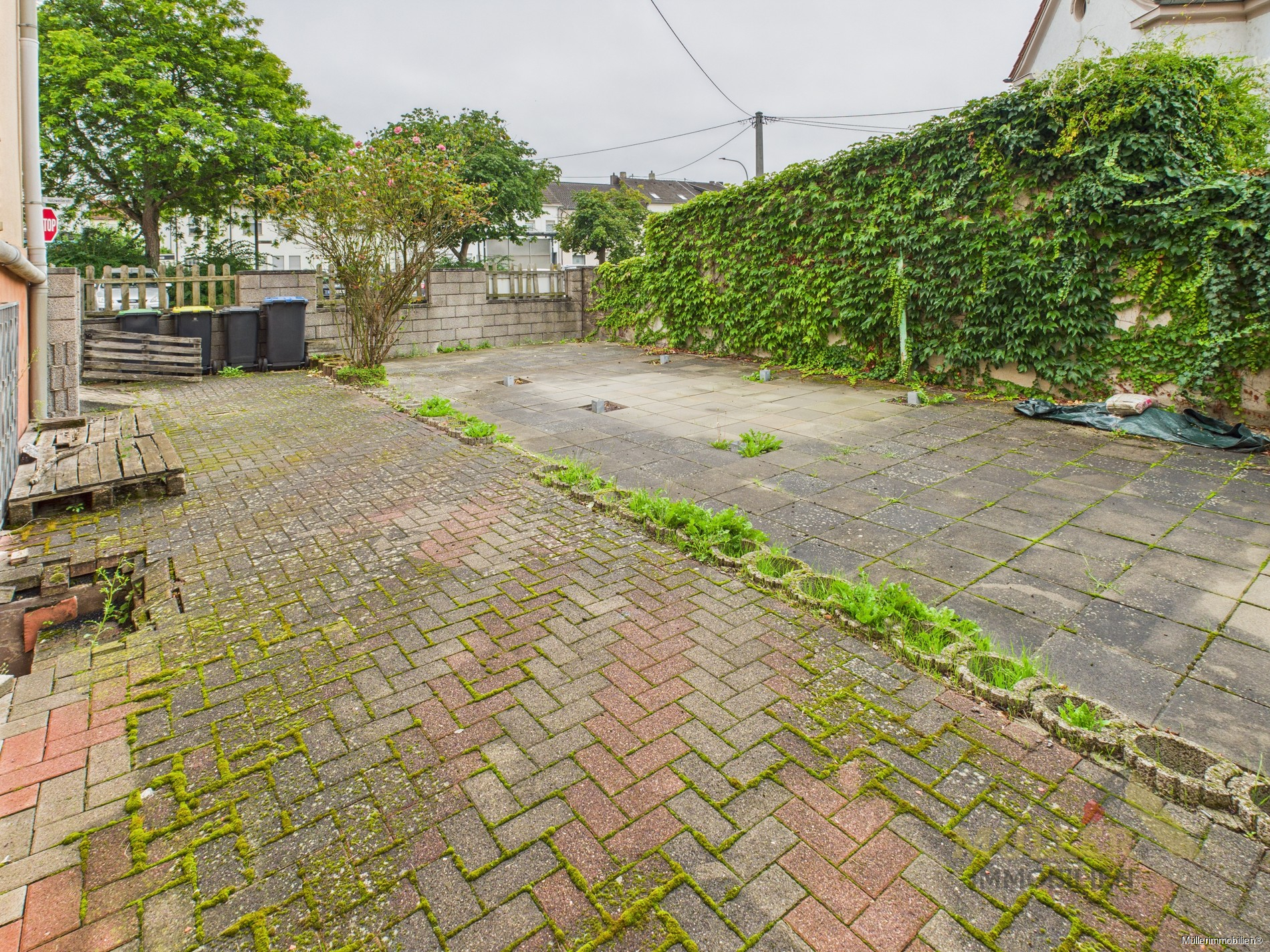 Der Wohnbereich zeichnet sich durch einen Mix aus Fliesen-, Beton- und PVC-Böden aus, die nicht nur stilvoll, sondern auch pflegeleicht sind. Für gesellige Abende oder entspannte Wochenenden ist der Freisitz im Hof der perfekte Ort, um frische Luft zu genießen und Ihre Außenwohnbereiche zu nutzen.